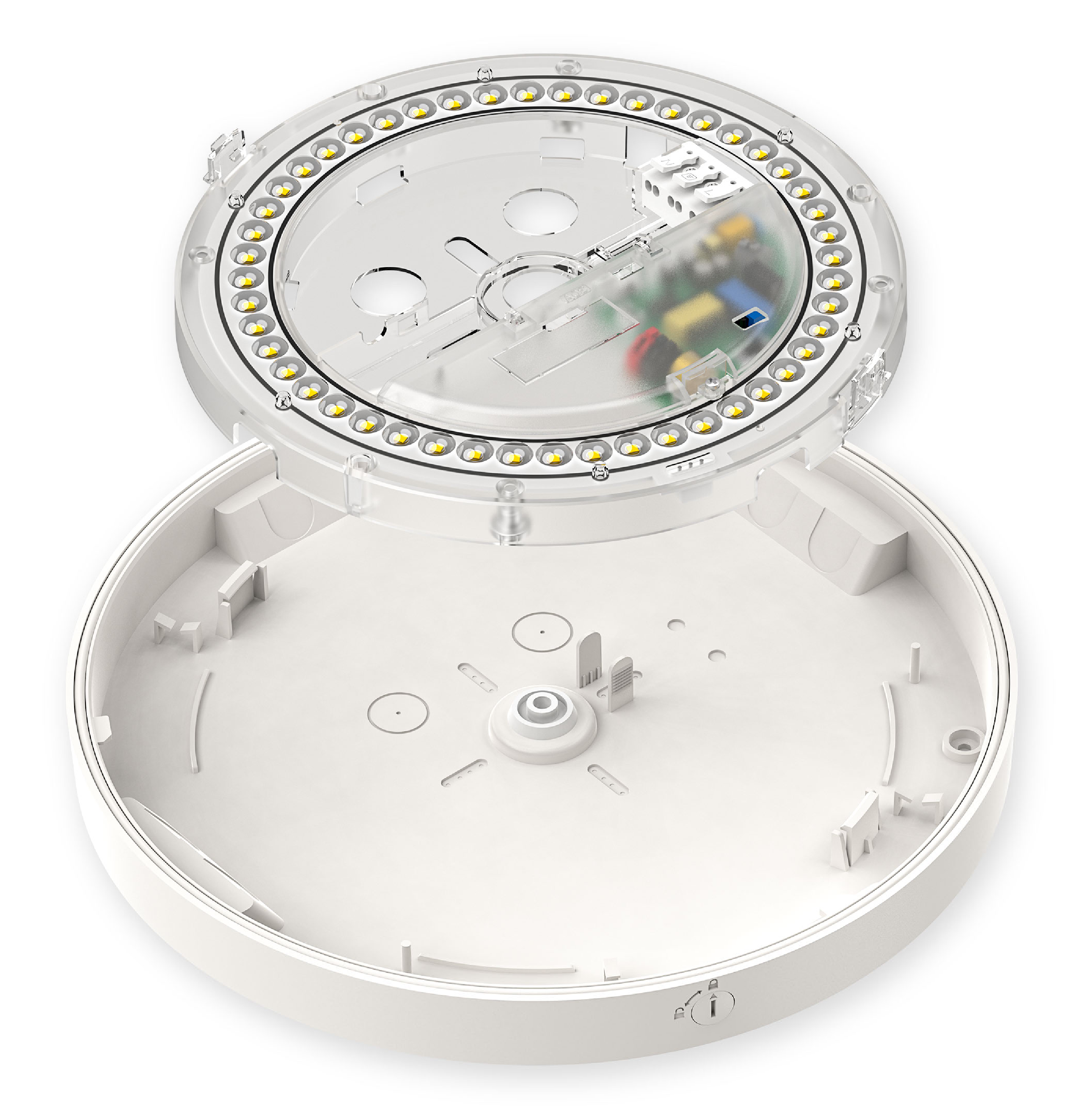 The next generation of bulkhead/ oyster fixtures features an innovative modularity, allowing both light engine/driver replacement and retro-fitting into existing luminaires. Robust protection from ingress and impact, a useful amount of uplight to reduce glare, adjustable-power and adjustable CCT, plus a simple aesthetic which blends in to any space. Long-life components and improved luminous efficacy lend the Tio to situations where energy efficiency is a priority, and this can be further enhanced by integrating an optional Zhaga Book 20 microwave sensor for standalone automated control.